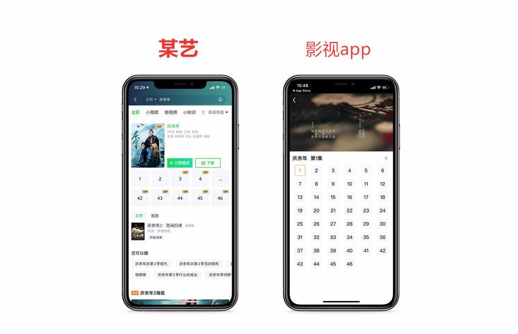 获取后打开,界面跟市面上的软件基本一致,但是未出现任何付费和广告信息,我们以火热的庆余年为例做下对比,如下图所示,某艺需要付费,而我们这款APP免费观看全剧集,而且无广告全蓝光超清。