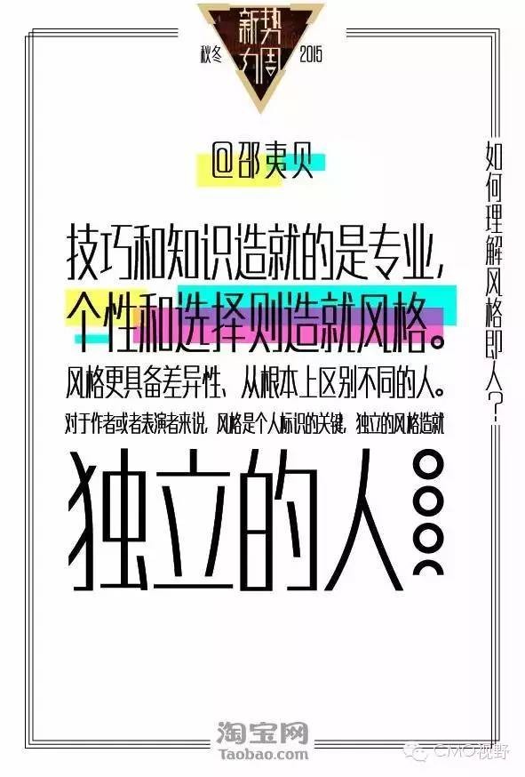 正是基于这样的目的,淘宝联合《南方人物周刊》和新浪微博,在这个不正经的年代做了一件很“正经”的事情,就是让100位艺术家、写作者、音乐人、段子手说出他心目中的“风格”到底是什么?