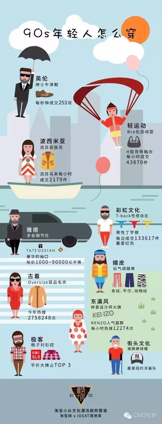 为了让淘宝用户了解现在年轻人到底喜欢什么,淘宝用大数据手段分离出20个独立的风格,与《理想家》杂志一起发布了《淘宝小众文化趋势图谱》,全面解读时下最为流行的风貌和穿着方式。