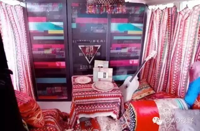 波西米亚是广州站的主题,用民族图腾的窗帘和地毯装饰,配上波西米亚式流浪特有的风铃和流苏,把用户带入复古的异域风情。