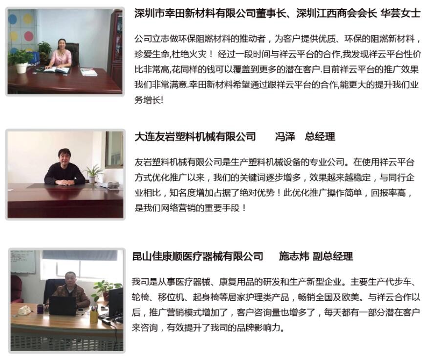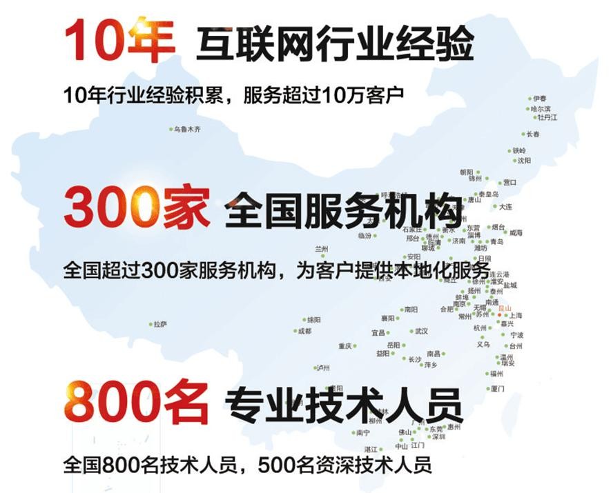 祥云平台为众多企业提供“营销型企业网站、微信展示平台、全网推广、移动应用”为主的服务,深入了200多个细分行业,帮助近50000企业开展网络营销与推广。根据“顾问式营销、本地化服务”的经营理念,祥云平台在北京、上海、广州、深圳、杭州、重庆、沈阳、武汉等200余城市设立了服务机构,成为规模庞大、实力雄厚的信息化运营服务提供商。