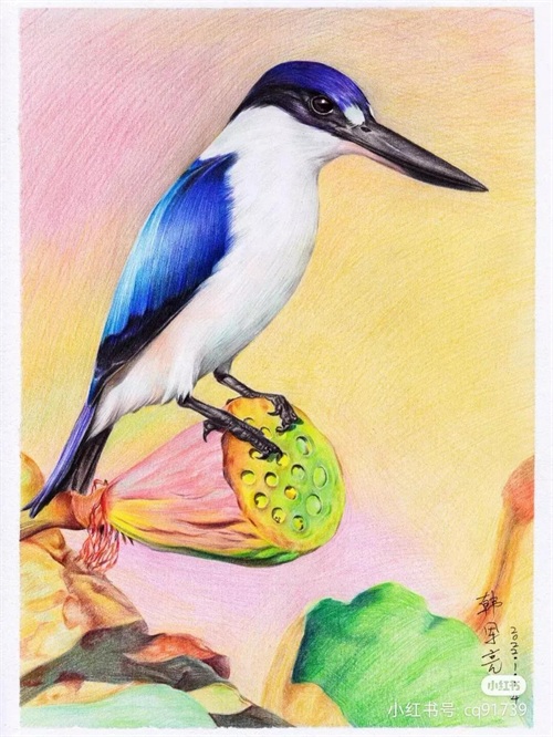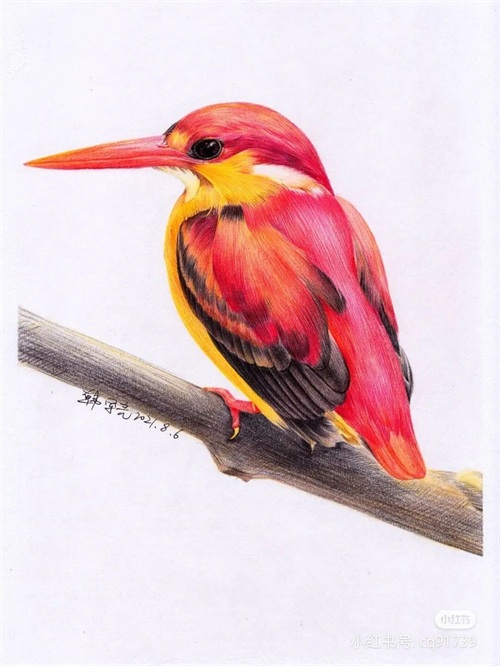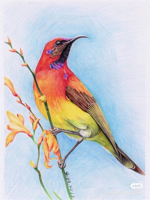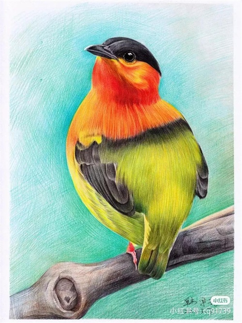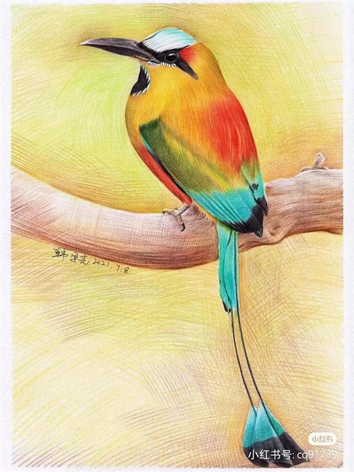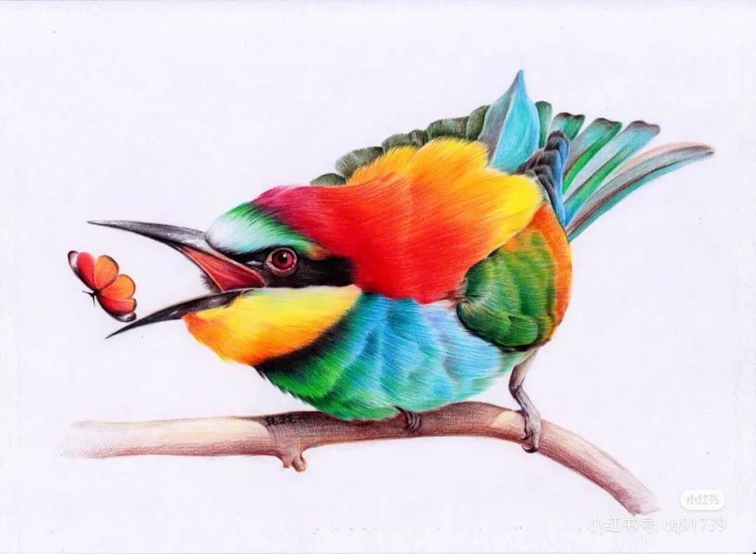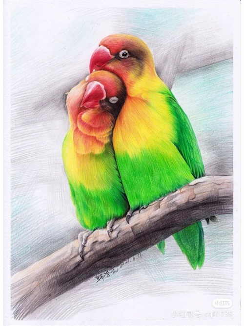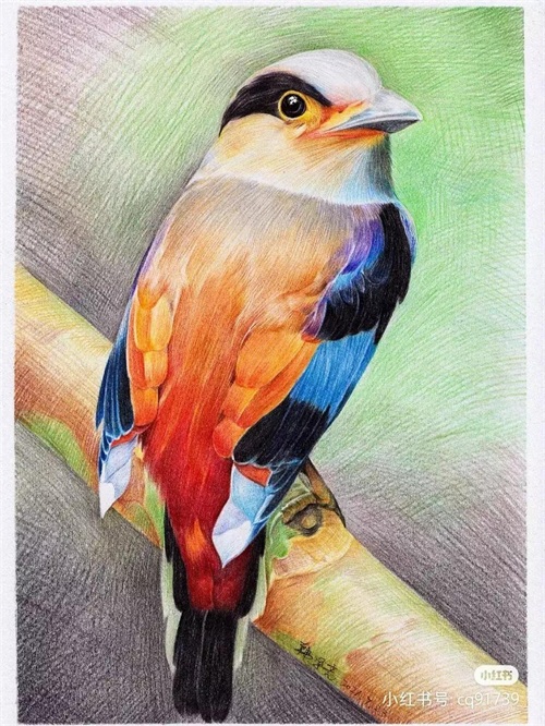 彩铅绘画素材—身披彩翼,心有灵犀一点通,五彩斑斓的鸟儿彩铅画