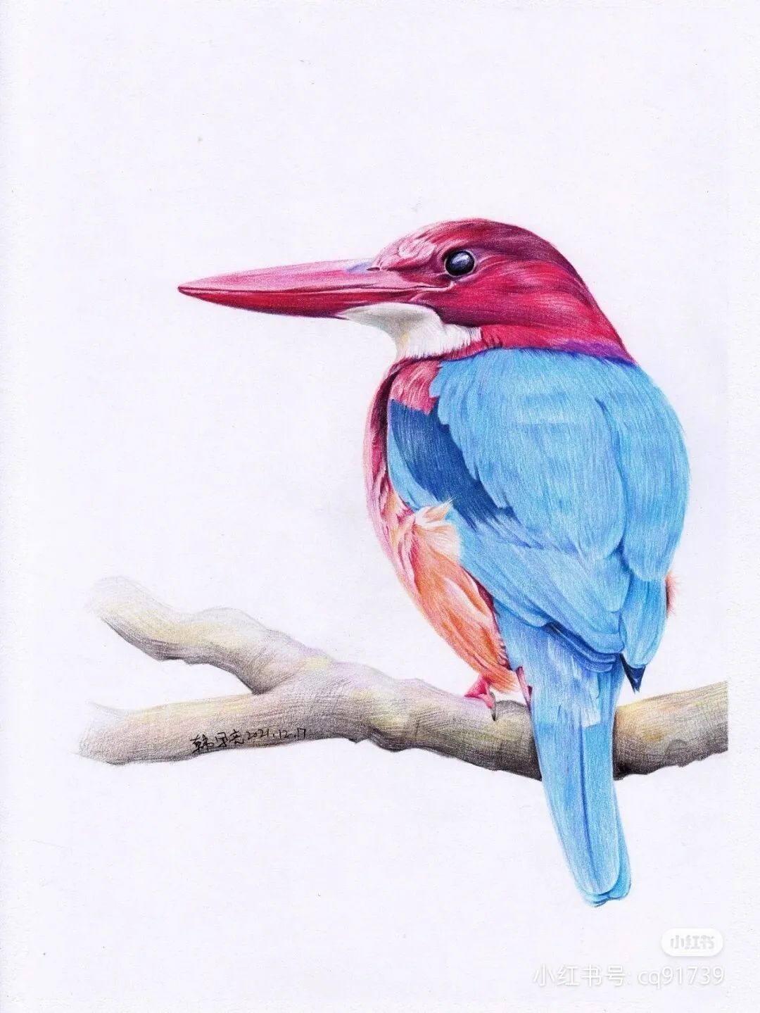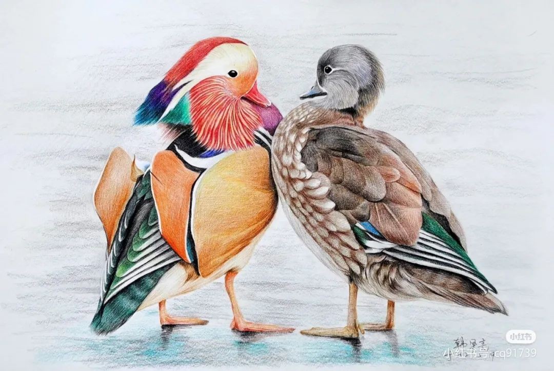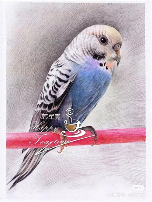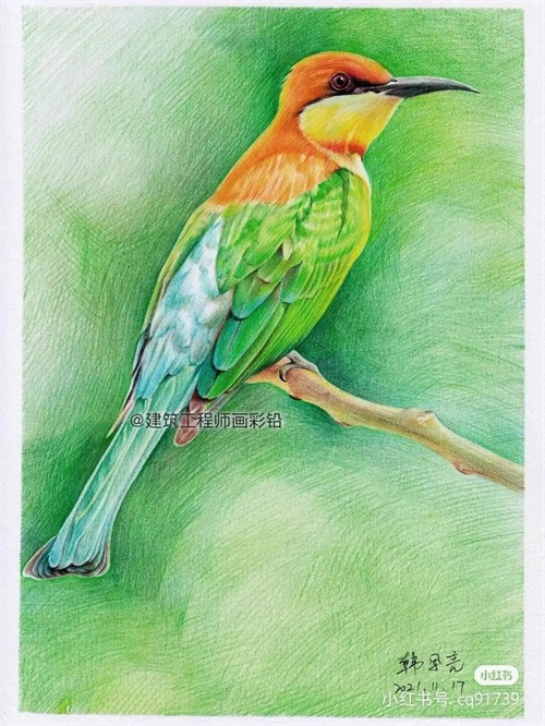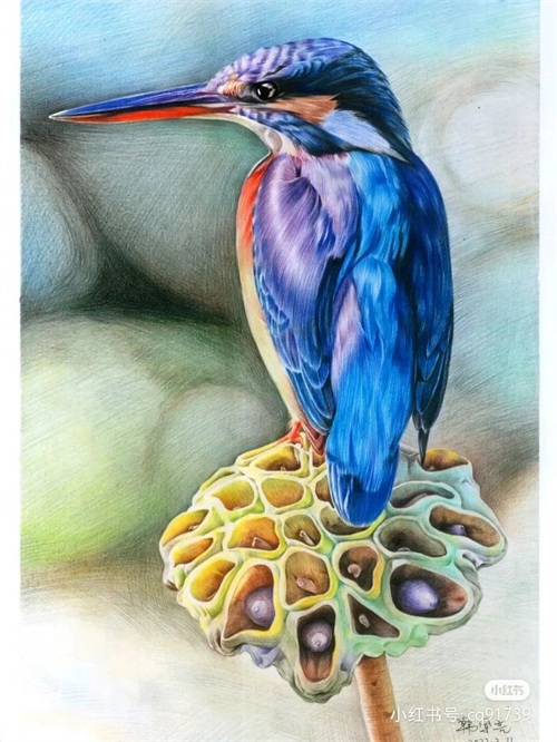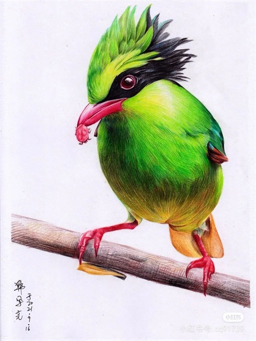 彩铅绘画素材—身披彩翼,心有灵犀一点通,五彩斑斓的鸟儿彩铅画