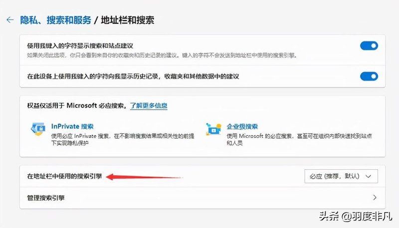 4.这里就可以看到“在地址栏中使用的搜索引擎”