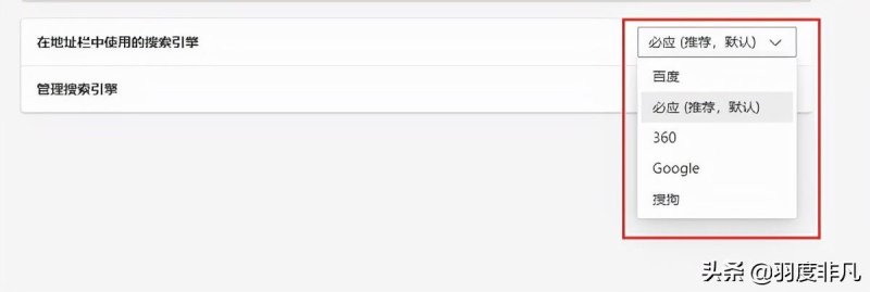 5.在下拉菜单中,选择想要使用的搜索引擎