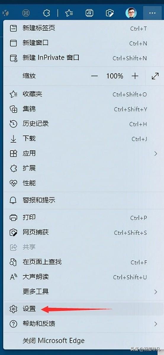 1.在Edge登录账户的右侧“…”菜单中找到“设置”