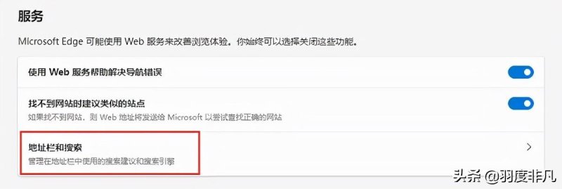 3.右侧页面拉到最下面,找到“地址栏和搜索”