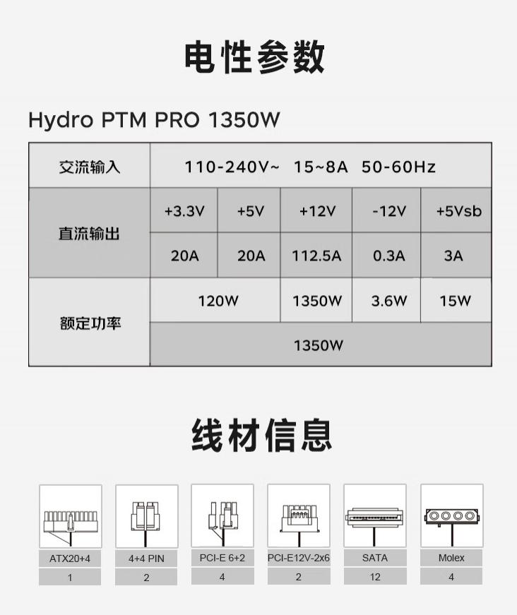 全汉推出 Hydro PTM Pro 1350W 白金电源,首发价 1799 元