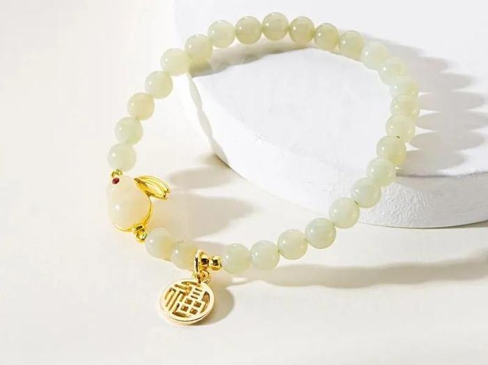 和田玉加上金色装饰精心点缀后,莹润光泽,流光溢彩。人们常说的“珠圆玉润”,才是真正好看。
