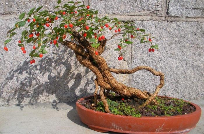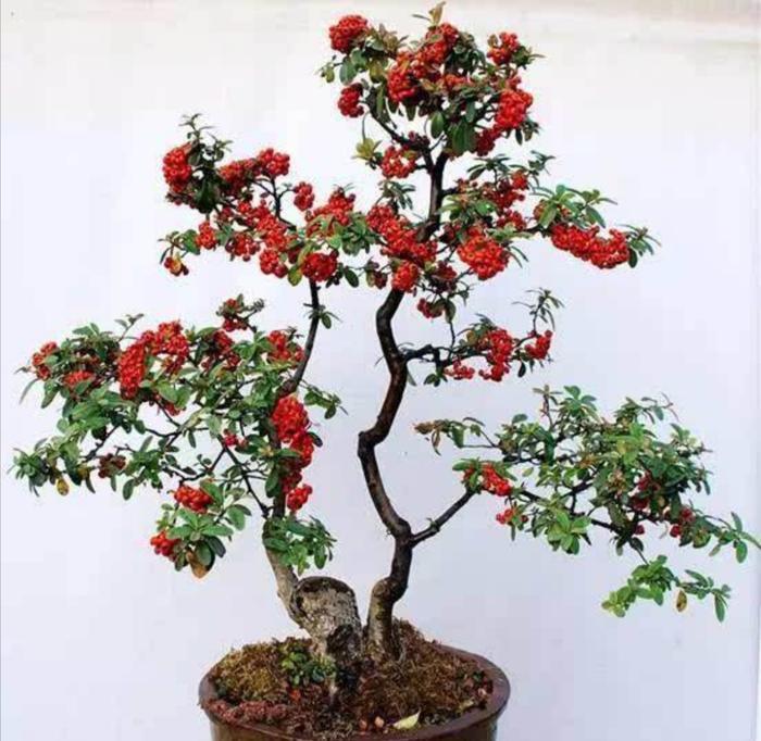 火棘为蔷薇灌木类植物,也是制作盆景的优质素材之一,而且材料比较易得,在我国很多地区都有分布。火棘具有很强的观赏性,尤其是结满果实后,满树红彤彤的小果子既漂亮又美观,显得非常的喜庆,很惹人喜爱,而且这些小红果是可以食用的,并含有丰富营养成份。喜欢的朋友不妨试试用火棘制作盆景,也是非常不错的哦!