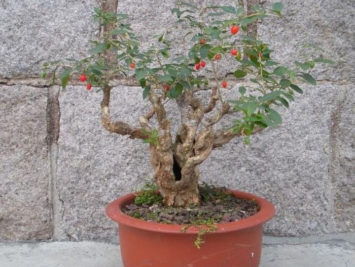 ②植物生长离不开养分,而施肥又是树木盆景养护的重要措施之一,充足的养分可促使树木茁壮成长。为枸杞施肥要合理掌握施肥的浓度,在生长期可施加一些腐熟的饼肥水,尽量要做到“薄肥勤施”,施肥过多过浓都容易形成肥害,把根系烧伤,严重的会造成整株枯萎,这一点要特别注意。