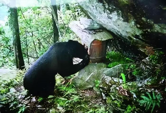 8月份,在重庆市城口县东安镇朝阳村的一蜜蜂养殖基地,黑熊偷食蜂蜜上瘾,已成惯偷,更过分的是,它连人家的蜂桶都端走,搬到了山崖上,难不成它还想自己养蜂不成?