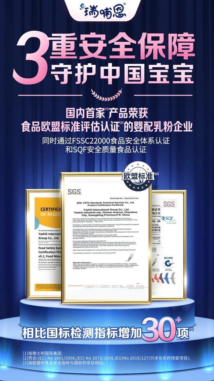 可以看见,蒙牛瑞哺恩亲和配方的成功打造得益于其在母乳研究领域的深厚沉淀。同时,凭借在保障产品安全质量道路上的不断精耕,蒙牛瑞哺恩更成为国内首款通过食品欧盟标准评估认证的婴配乳粉产品,如今,蒙牛瑞哺恩旗下产品抽检合格率均达到100%的高质量水平。面对新国标新契机,雅士利国际控股有限公司行政总裁兼执行董事闫志远先生表示,未来将加大在“全产业链、品牌升级、渠道动销”三方面的投入,为健康中国战略实施贡献蒙牛力量!