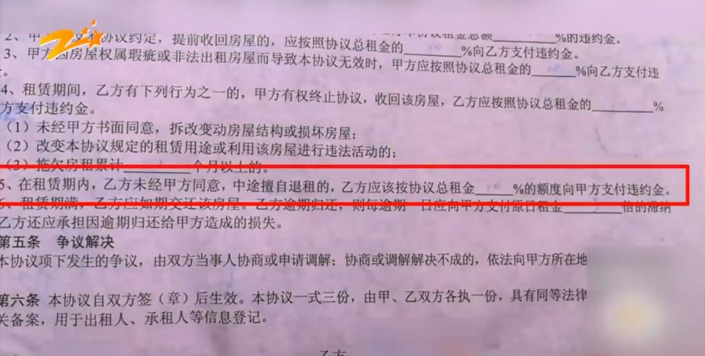 翻看潘女士的租房合同看到,甲方是房东,合同约定租期是到明年 3 月,不过现在潘女士有了新房,已经住了进去,所以要求提前解约,按照合同约定,要扣除年租金的 10% 当作违约金也就是 4000 元,毕竟是提前违约,扣 4000 元违约金潘女士认可,可她认为,3200 元的押金必须退还,另外,那些所谓赔偿,潘女士也不认可。