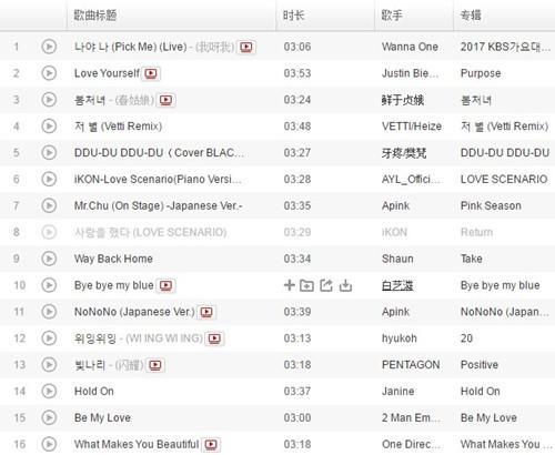 全部歌单如下: