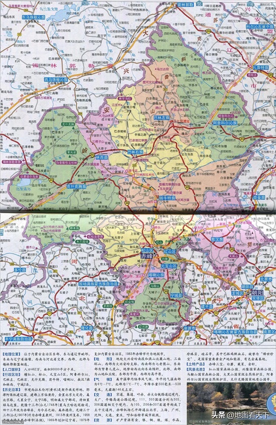 【行政区划】辖红山、松山、元宝山3区,阿鲁科尔沁、巴林左、巴林右、克什克腾、翁牛特、喀喇沁、敖汉7旗和林西、宁城2县。
