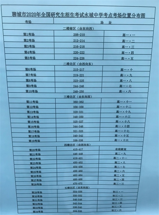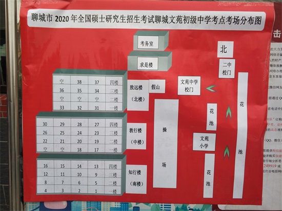 2020年全国研究生招生考试即将开始,准考证打印入口已开通,初试时间:12月21日-22日,为帮助各位考生考试顺利,山东中公教育特整理了2020研究生招生考试聊城考点考场分布图,希望对各位考生有所帮助!