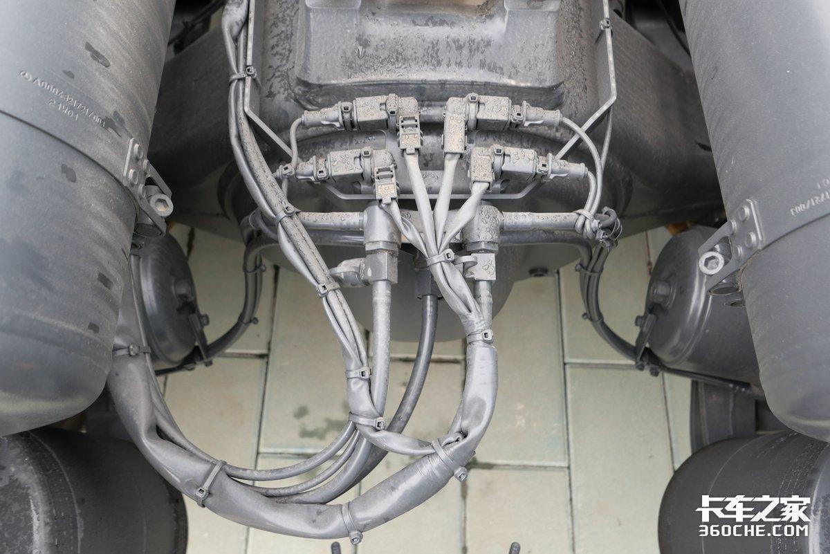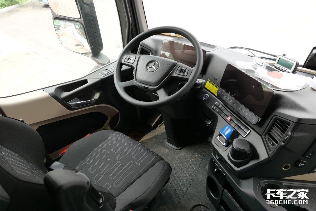 实拍车是国六标准的车型,搭载奔驰第二代OM471发动机,最大510马力,而且这个发动机还配备了变量水泵,实现按需调节,实现了更好的散热效能,帮助降低油耗。