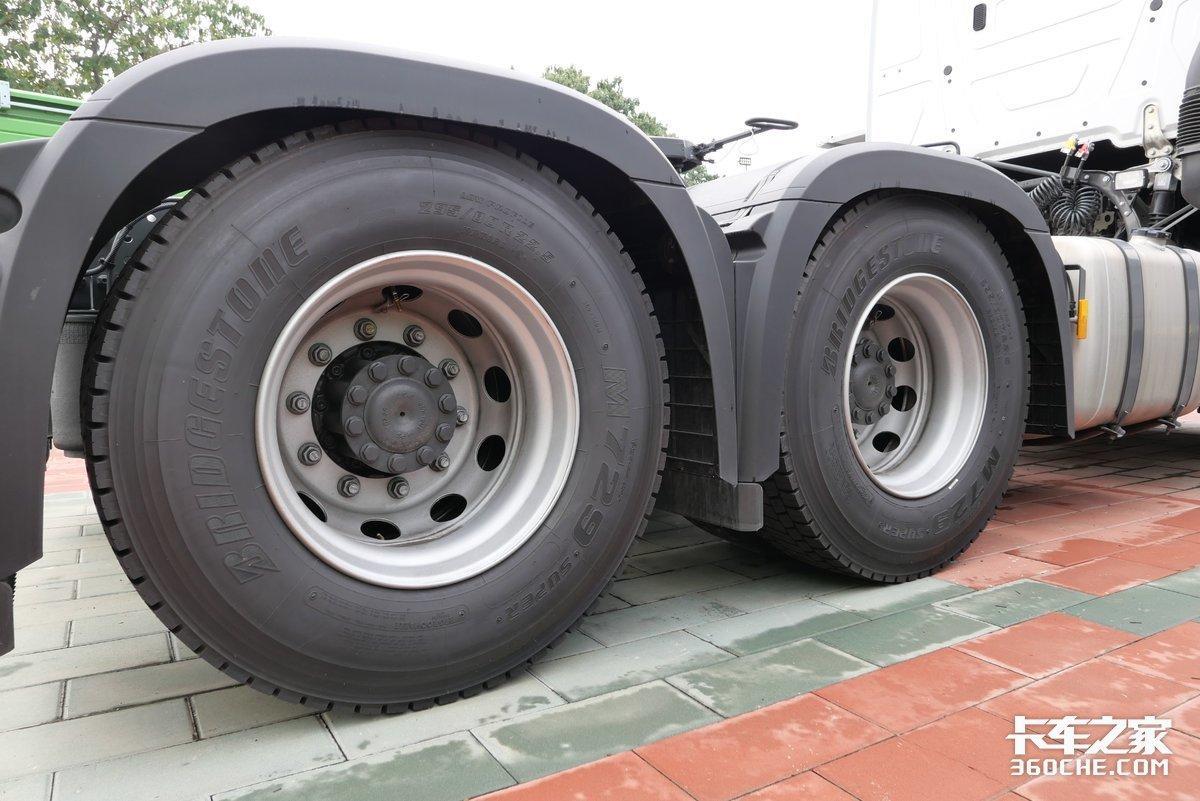 驱动轮上使用的是普利司通的M729 SUPER轮胎,这款型号轮胎主要面向长途高速工况。在某电商平台上,该型号轮胎报价约2700元/条,后期更换的成本虽然高于12R22.5,但整体的综合收益还是会有明显优势。