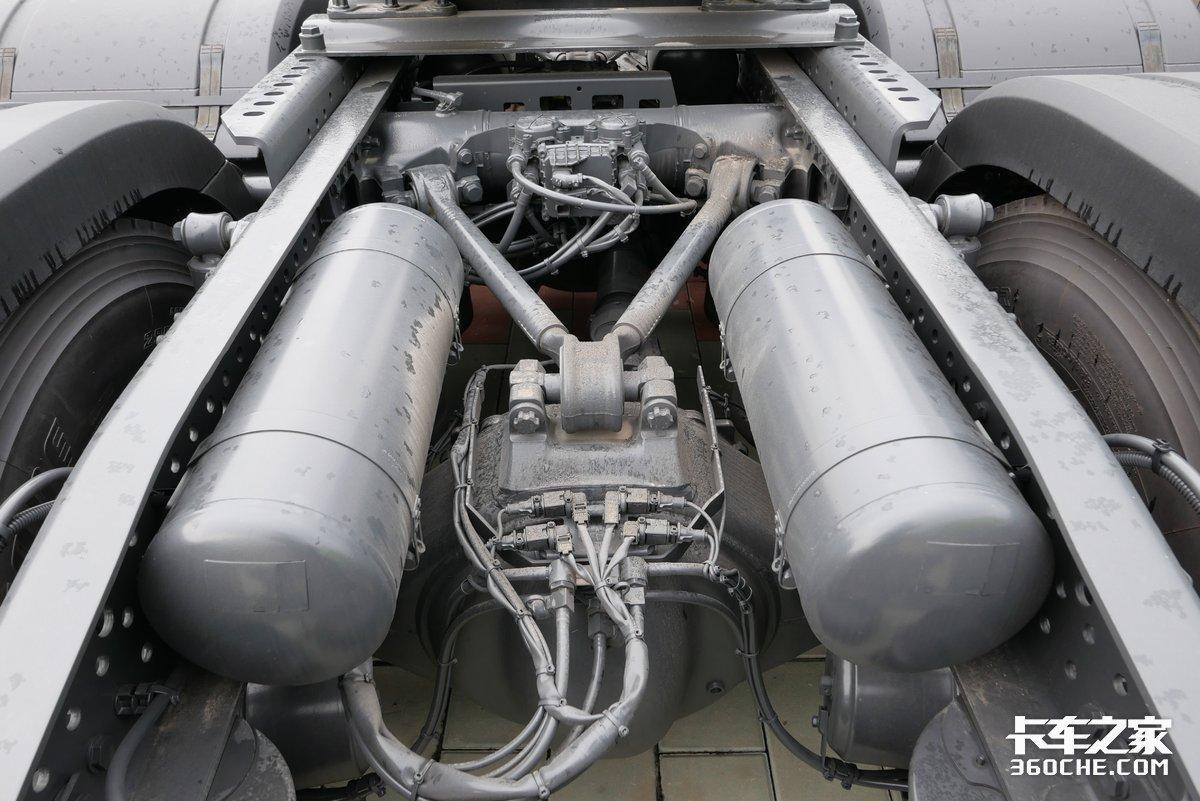 为了更加节约车身空间,奔驰将储气罐都布置在了大梁内侧。宝贵的外侧空间全部留给油箱,为用户提供更大的续航里程。