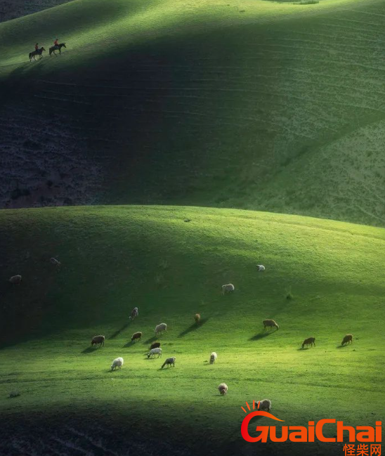 绵柔平整的草原,像是被风吹动的绿毯,突然时