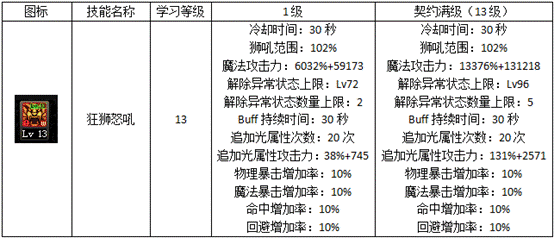 大狮子改版之后已经稳定全程增加百分之10暴击了而且伤害为混伤,伤害数据超高,推荐点满,但是星云姨妈链的使用者注意这个技能的清除状态等级,然后适当的扣除一点大狮子等级