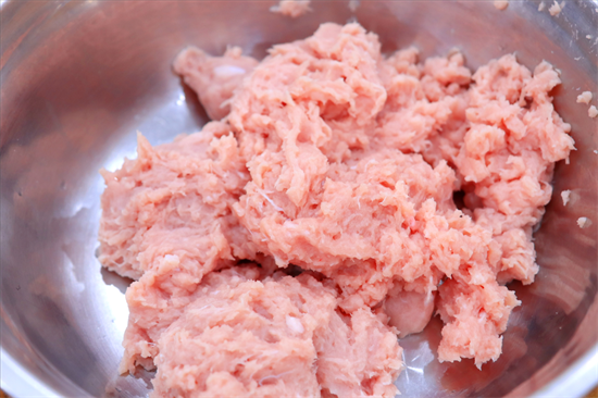 加入少许黑胡椒后,用筷子顺着一个方向不停地搅拌,让肉吸收调料的味道,搅至肉泥上劲成团就可以了。