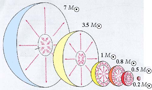 各种质量的恒星内部结构图