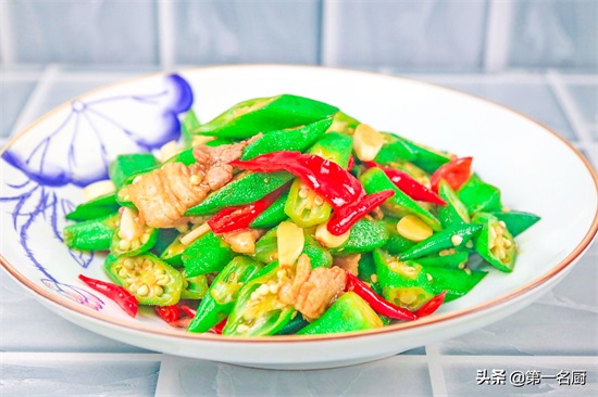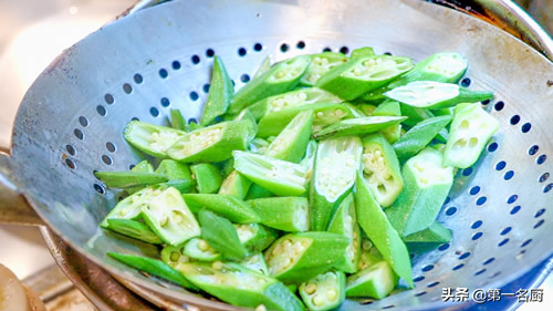 炒锅烧热,倒入食用油,等油温烧至五成热时,下入秋葵,滑油10秒钟,即可倒出控油。
