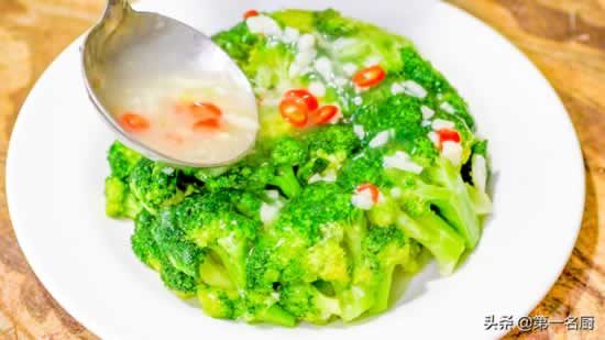再把锅里面的汤汁烧开,勾入少许水淀粉,淋入少许明油,简单翻炒几下,把汤汁均匀地浇在西兰花上面,美味即成。
