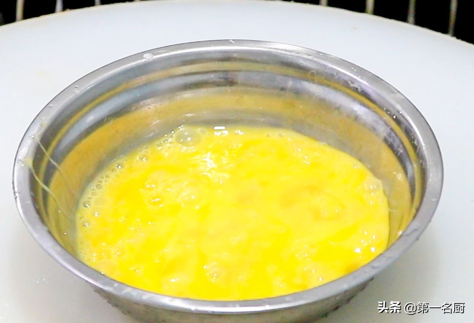 菠菜一把备用,蒜子几粒拍扁,切成蒜末,取一个小盆,打入两个鸡蛋,加入少许食盐增加底味,再加入少许水淀粉,用筷子打散备用。