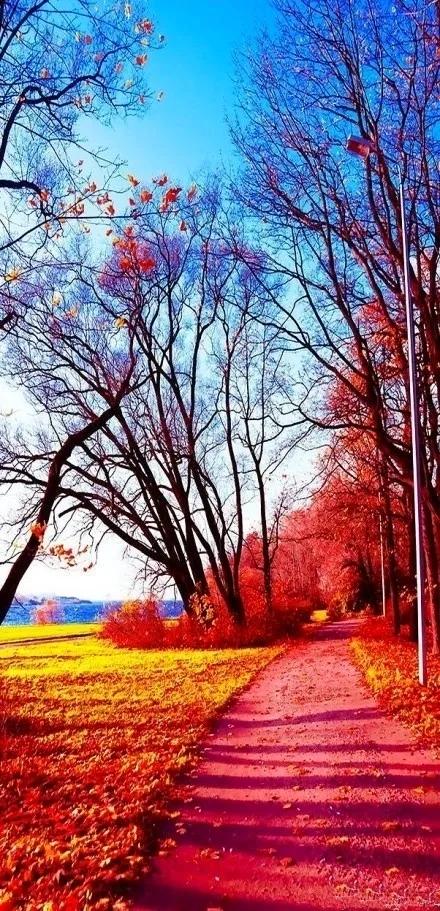 94. 深秋的晚霞,比夏季来的浓烈, 飘散的红叶,摇曳落地后又重叠。
