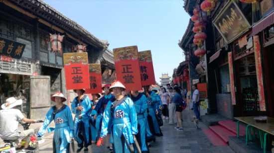 恰好走过一队“古代衙役”举着“正堂”“肃静”的木牌,仿佛从历史中走来,也让我们走进了历史。