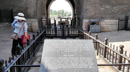 导游带我们首先参观瓮城,瓮城就是在城门外的小城,中国古代城池中,瓮城的设置兴盛于五代和北宋时期,形状圆者称瓮城,方者称方城。