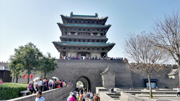 平遥的瓮城为方形,高与大城相同,战争时,敌方如果攻入瓮城,城上可以居高临下,围攻入城之兵,如同“瓮中捉鳖”。