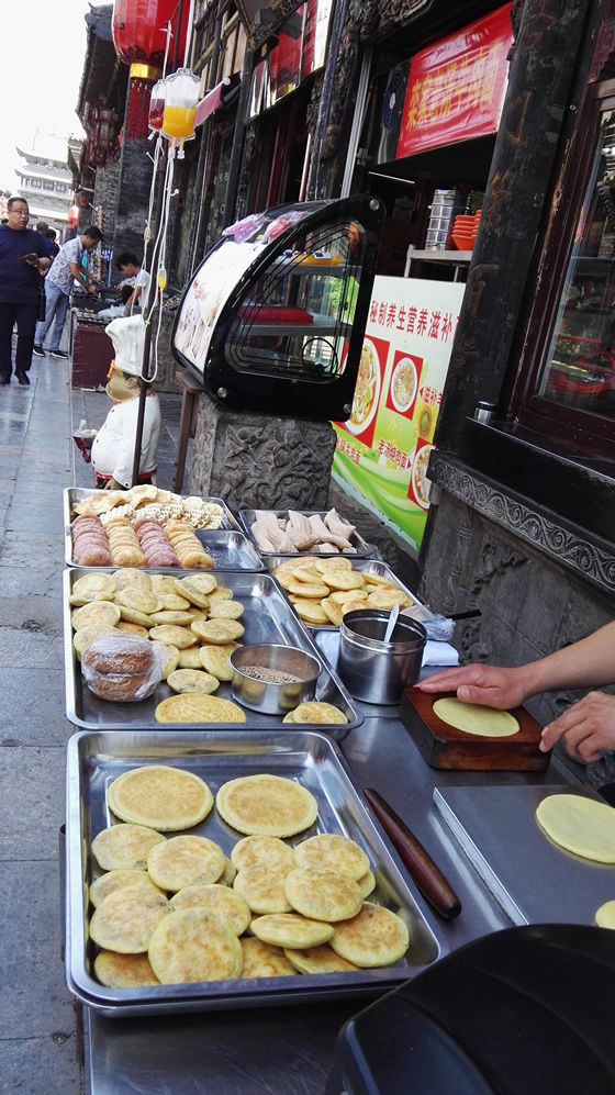 平遥号称有108种小吃,餐饮特色以面食为主,在明清一条街上品尝了平遥的小月饼。