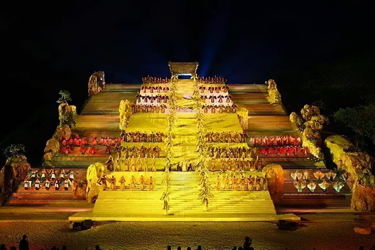 表演内容:项目总时长约80分钟,整个演出共分为七个篇章,包括序幕、金戈铁马——秦、儒风雅乐——汉、盛唐气象——唐、艺术王朝——宋尾声。穿越了中国5000年的历史时空,500名演员,5000套霓裳华服,演绎了中华民族的历史故事,真实再现了古代五朝的市井文化和帝王封禅场景。所表现的内容,实际上是当时那个朝代华夏文明发展所达到的高度,是对民族人文精神的深度思考,是对华夏古老文明的崇高礼赞,也是目前国内第一场涵盖了五朝历史的演出。