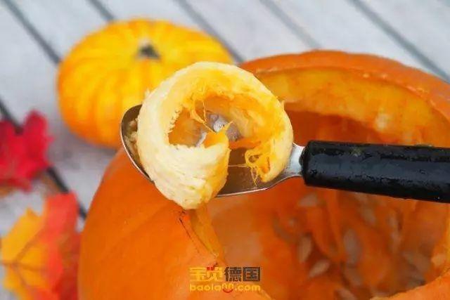 你可以先用手拿出瓜籽部分,再用勺子尽可能轻柔的挖取瓜瓤,注意留下的南瓜壁大约2cm左右,太薄容易损坏,太厚不透光;当然含有丰富的营养成分的瓜瓤可别浪费了,做成南瓜泥、南瓜糕点等,小孩子也会喜欢的;