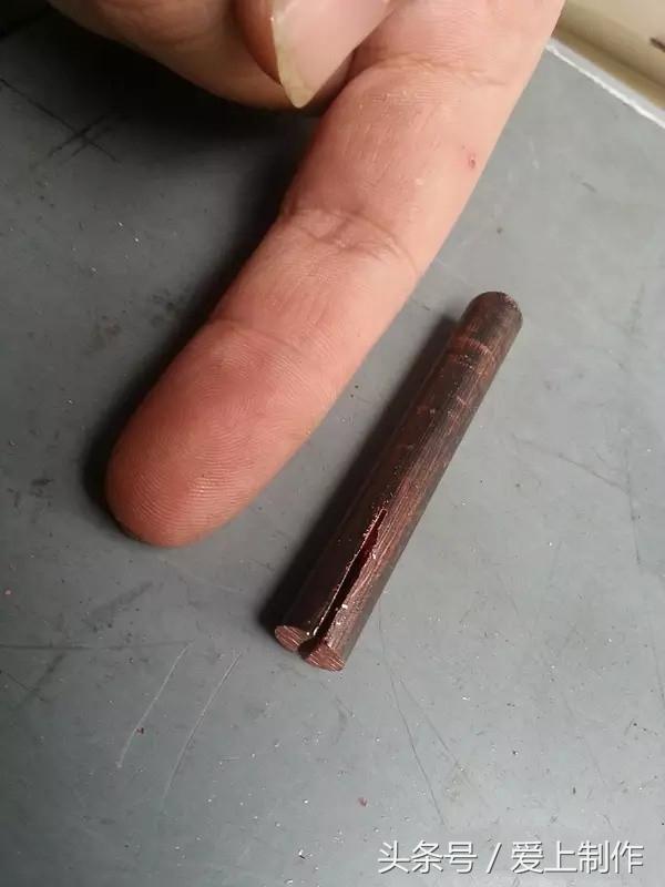 1、首先是8MM的铜棒一分为二,由于现有的铜棒过粗,切开后用锉刀搓去一部分,保留前端针状便于焊接比较小面积的物件