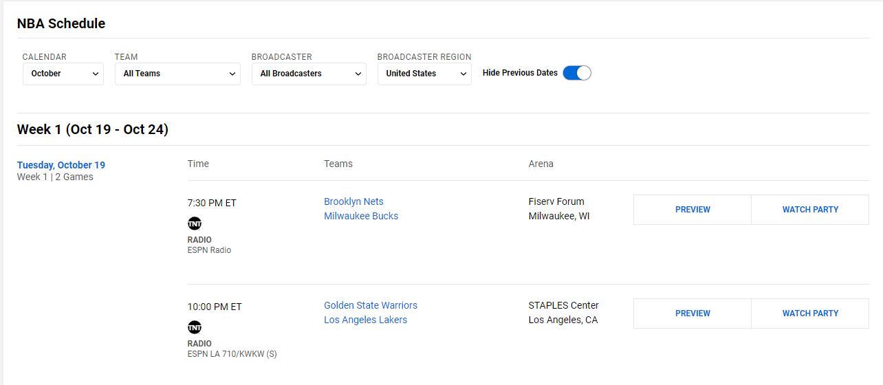 揭幕战首日有两场比赛,分别是篮网对阵雄鹿,时间是美国时间晚上19:30,北京时间为10月20日早上7:30.