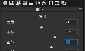 1、锐化:在“细节”选项卡中,调节锐化的数量和半径对照片进行锐化的操作,过渡的锐化会产生噪点,而适当的噪点也能增加照片的质感,把握好调整的尺度就好。