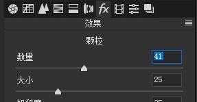 2、添加颗粒,在“效果”选项卡中,通过调节颗粒菜单下的数量、大小、粗糙度来添加画面的颗粒感。