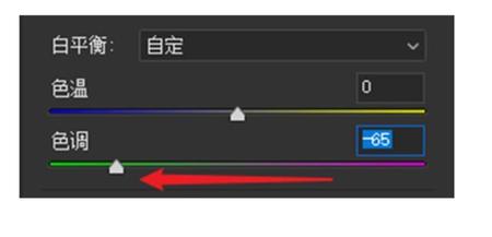 我们直接在色调调节按钮上把画面整体色调往黄绿方向进行调节,我们在制作怀旧复古照片时,通常把画面做成泛黄的效果,同时让画面黄中带绿,因为绿色会给人以距离感,黄绿色调比较契合复古色调。