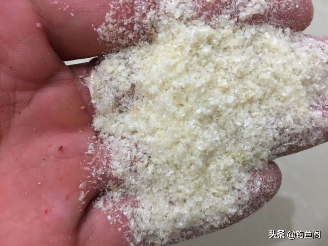 仅凭浮漂这一点还不足以为新手提供很大的便利,所以就要再分享一个小技巧,那就是在饵料里加轻麸。轻麸有增加雾化和减轻比重的优点,加入轻麸后饵料就变轻了,饵料一旦变轻,压下的目数就会变少,这样一来你搓大点搓小点问题就不是很大。