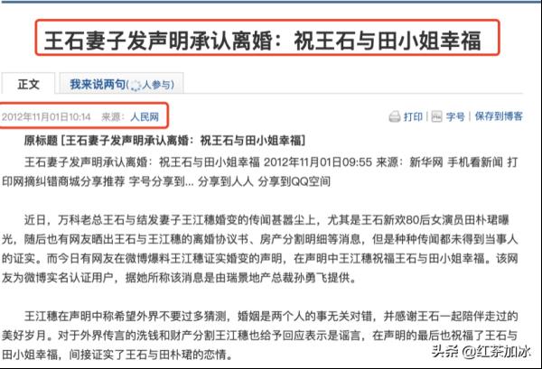 王石妻子发声明承认离婚:祝王石与田小姐幸福