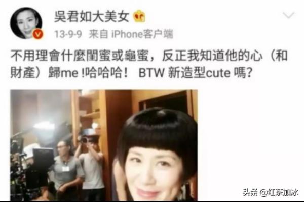 再过两天,吴君如又实力打脸田朴珺,“不用理会什么闺蜜或龟蜜,反正我知道他的心(和财产)归me!哈哈哈”。