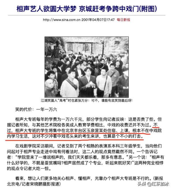 在2001年的时候,还有媒体报道这个「上戏成教学院」其实打着「中戏」名号来宣传,但根本不在「中戏」院内学习生活。