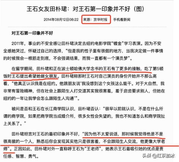 关于如何认识王石,田小姐的说辞总是前后矛盾,在2014年接受「京华时报」采访时:
