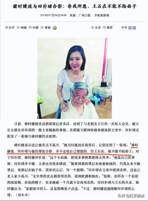 褚时健谈与田朴珺合影:非我所愿,王石在不能不给面子