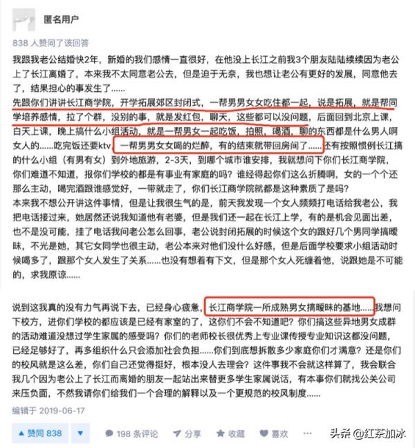 知乎上有人评价「长江商学院」,是一所成熟男女搞暧昧的基地,说那边上学的女同学都很主动,自己结婚两年的老公还跟人发生了关系。